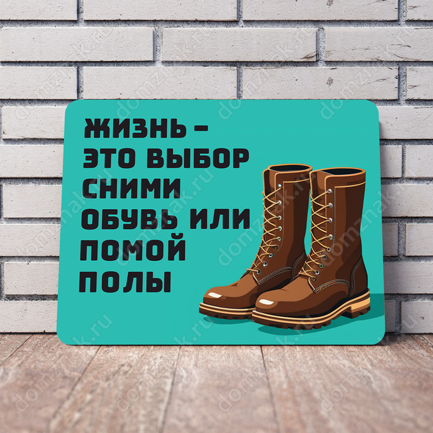 Табличка «Жизнь - это выбор. сними обувь или помой полы»