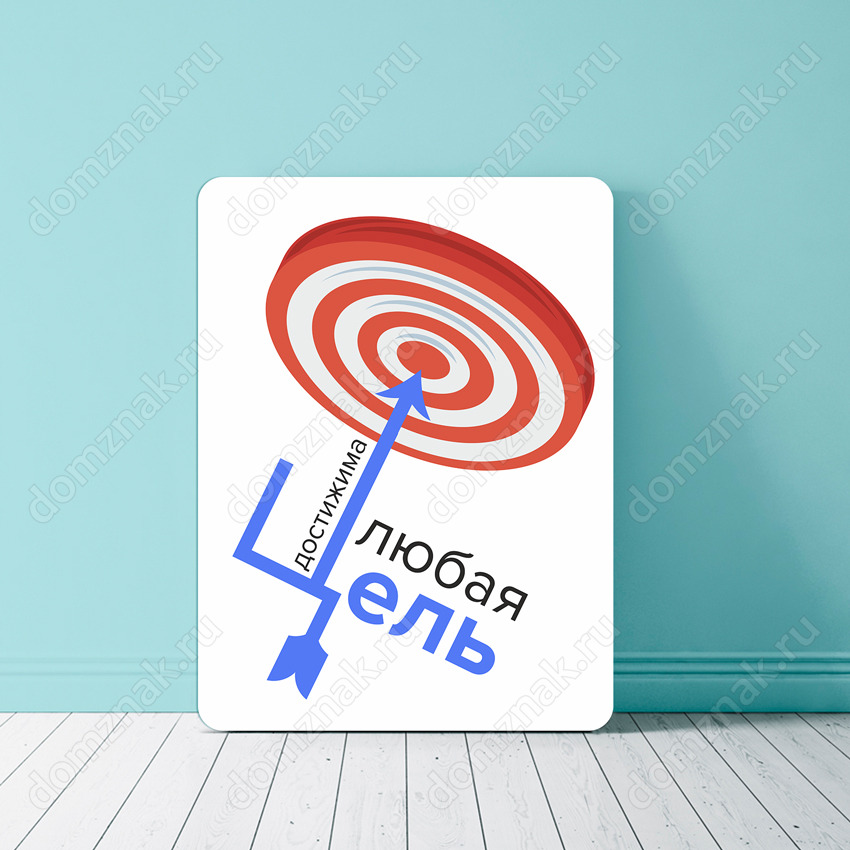 Табличка «Любая цель достижима» изготовлена из пластика ПВХ, толщиной 4 мм. Изображение наносится по технологии УФ-печати. Табличка предназначена для использования как в помещении, так и на улице.