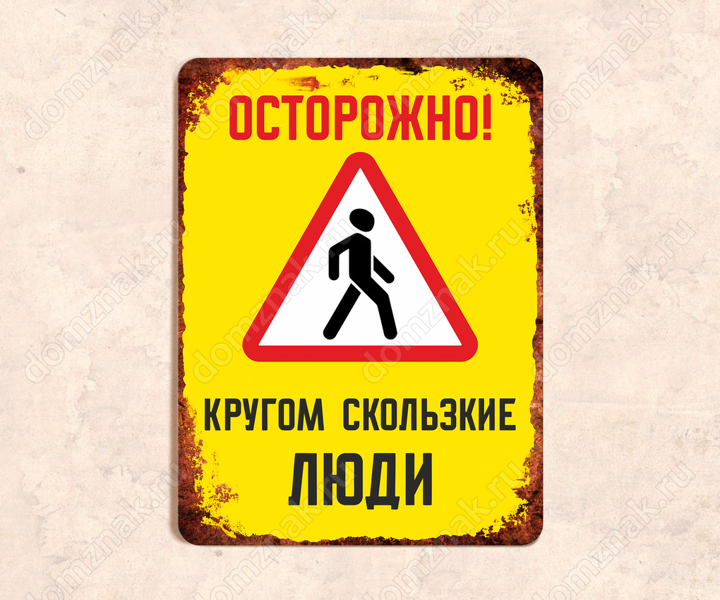 Табличка «Осторожно! Кругом скользкие люди» изготовлена из пластика ПВХ, толщиной 4 мм. Изображение наносится по технологии УФ-печати. Табличка предназначена для использования как в помещении, так и на улице.