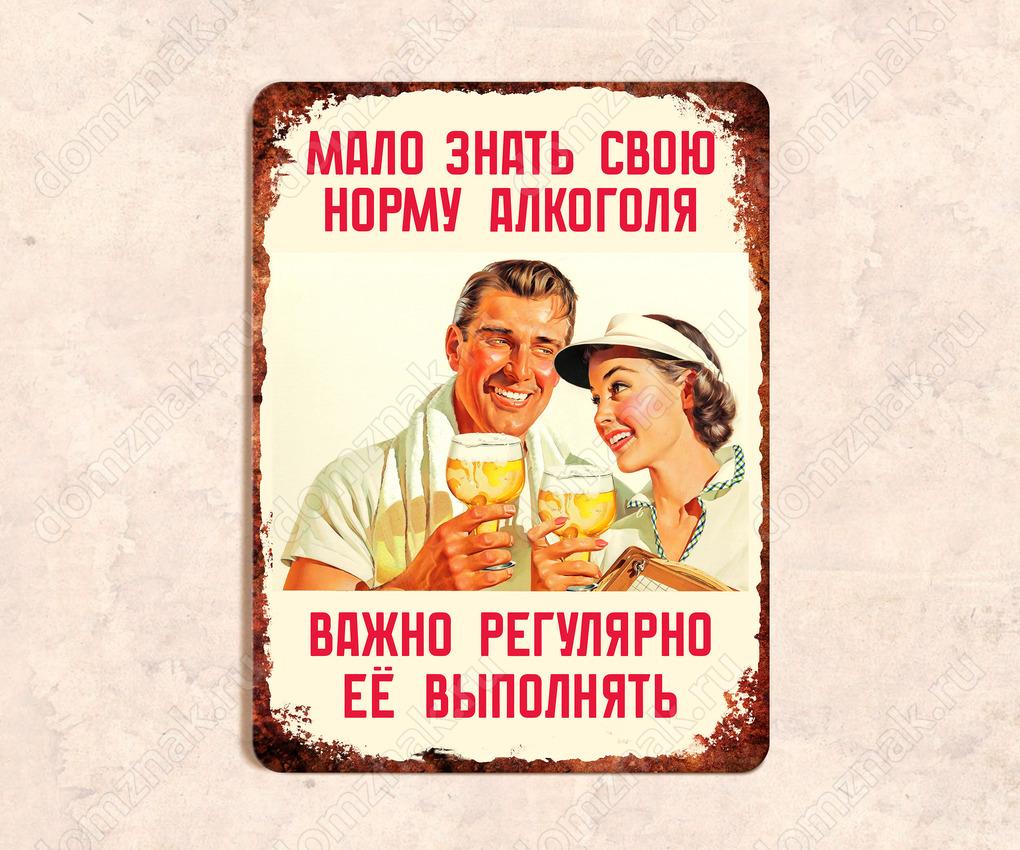 Табличка «Мало знать свою норму алкоголя. Важно регулярно ее выполнять»